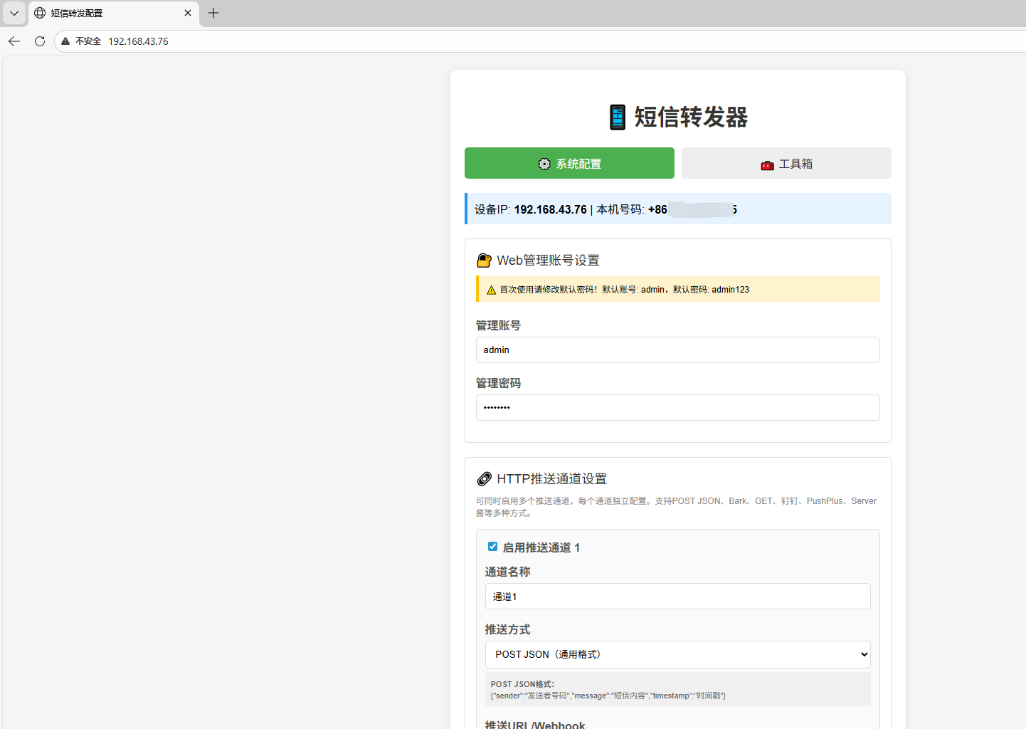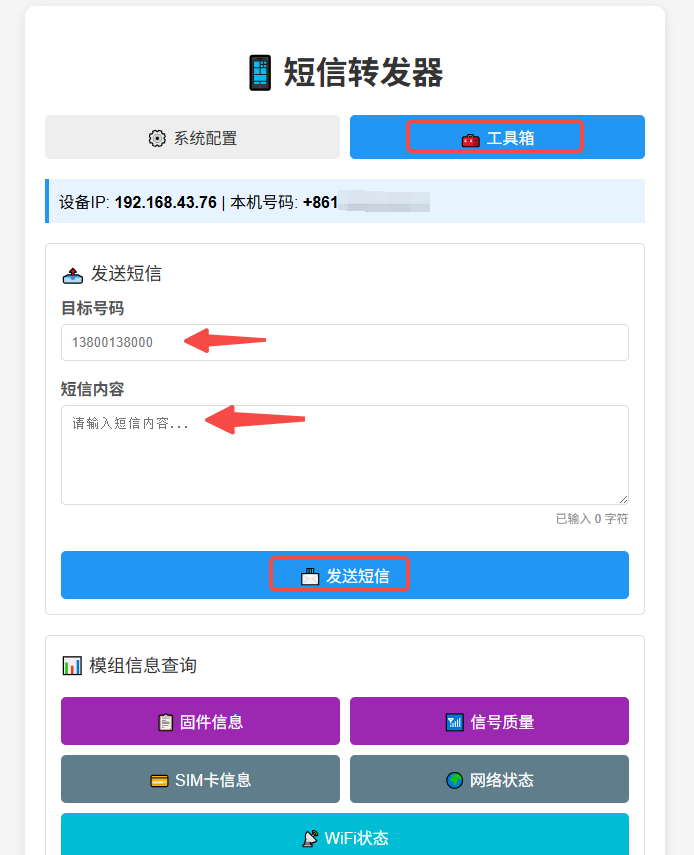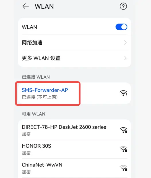 WIFI短信宝,无需消耗手机卡流量,即可实现短信转发;可自由配置WIFI名称和密码。