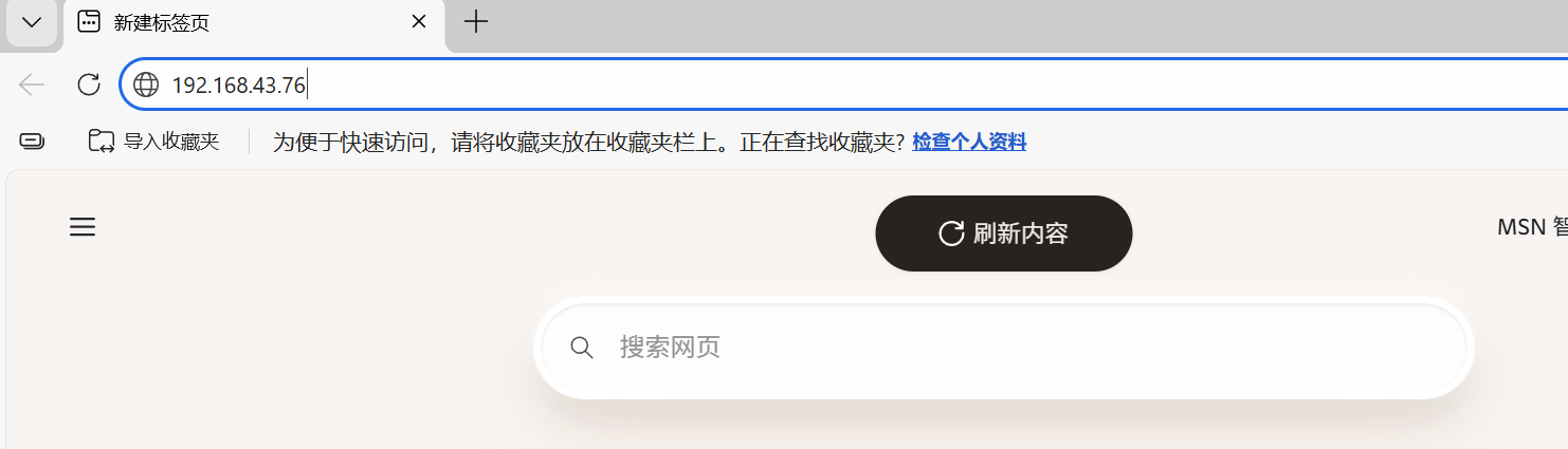 - 电脑浏览器(或者手机浏览器)输入打印的IP地址,每个人不一样,我这里是192.168.43.76